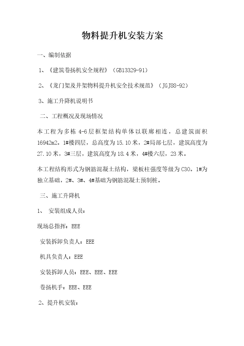 物料提升机安装方案