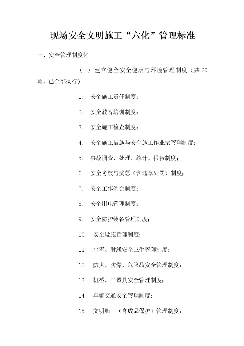 现场安全文明施工“六化”管理标准