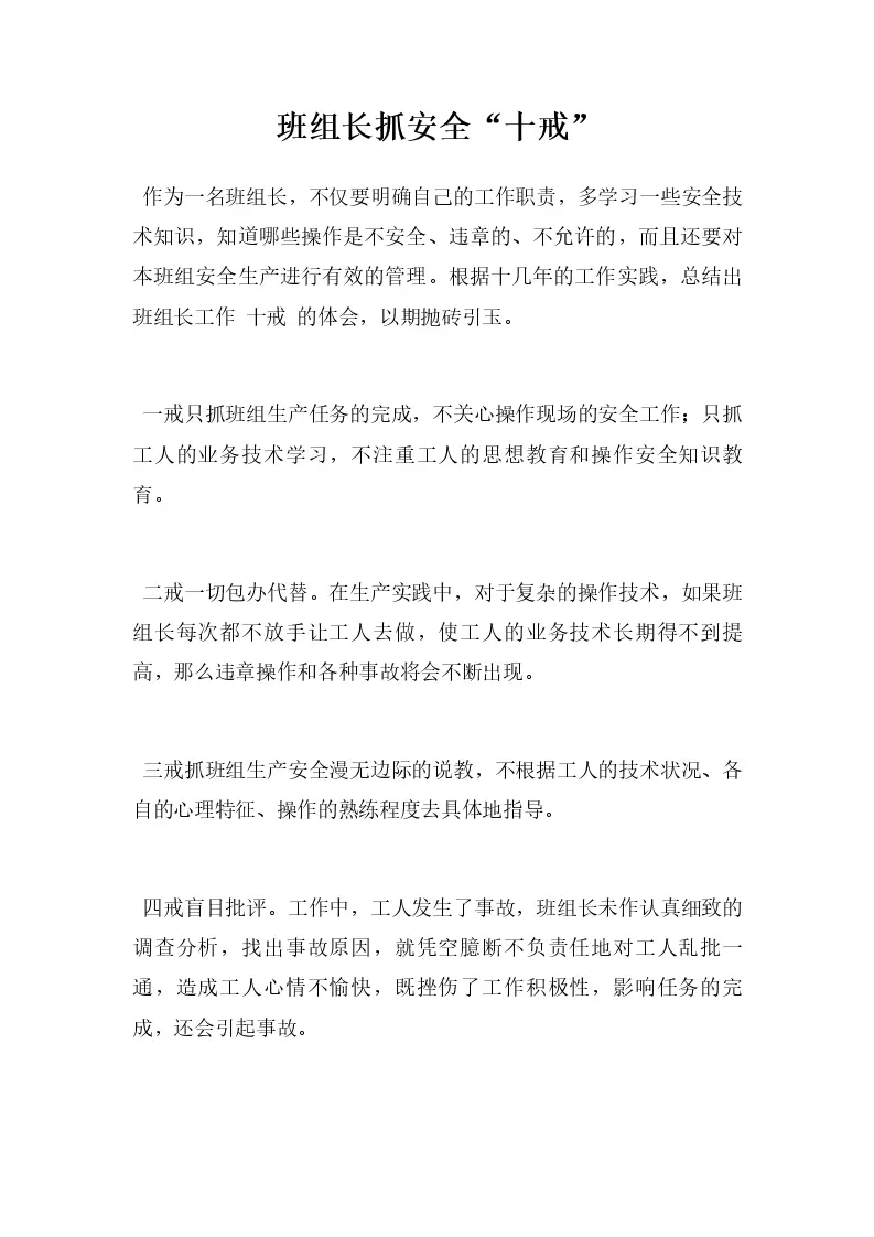 班组长抓安全“十戒”