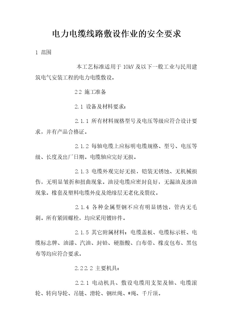 电力电缆线路敷设作业的安全要求