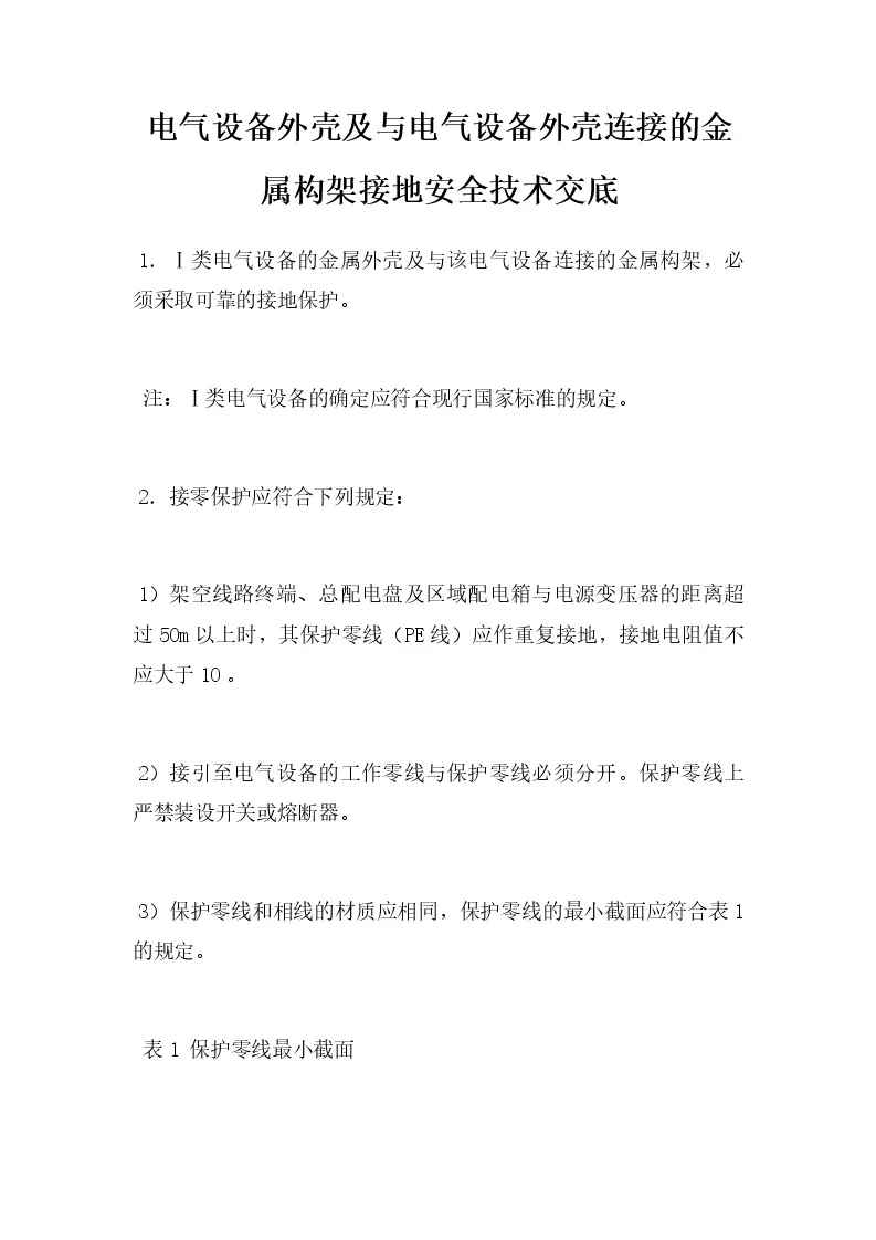 电气设备外壳及与电气设备外壳连接的金属构架接地安全技术交底