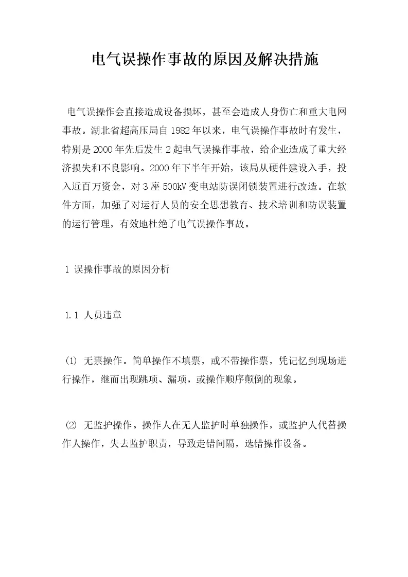 电气误操作事故的原因及解决措施