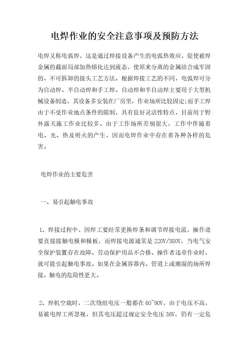 电焊作业的安全注意...