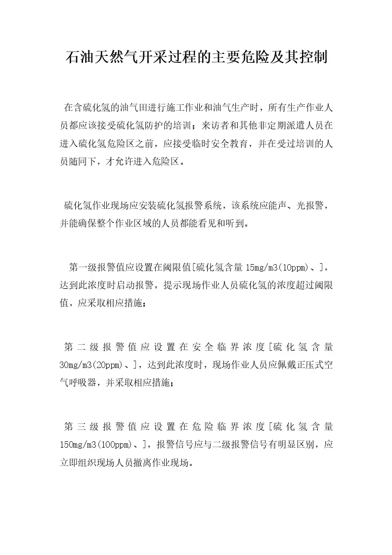 石油天然气开采过程的主要危险及其控制