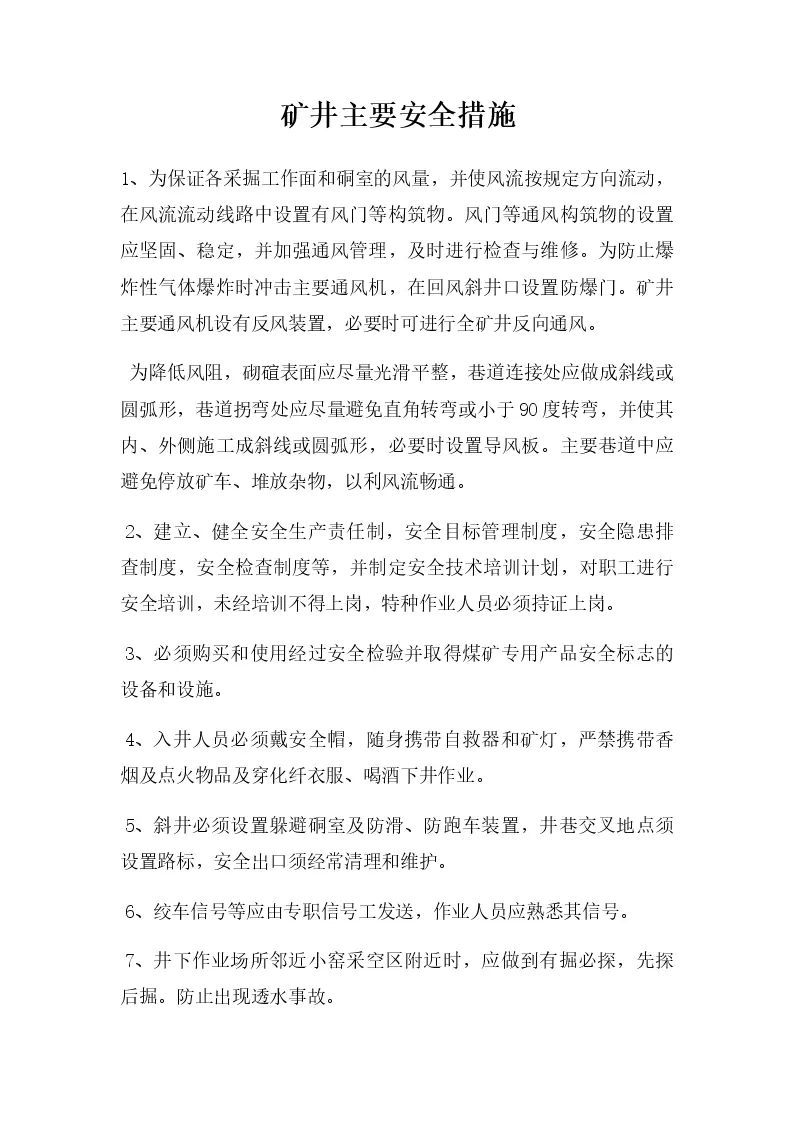 矿井主要安全措施