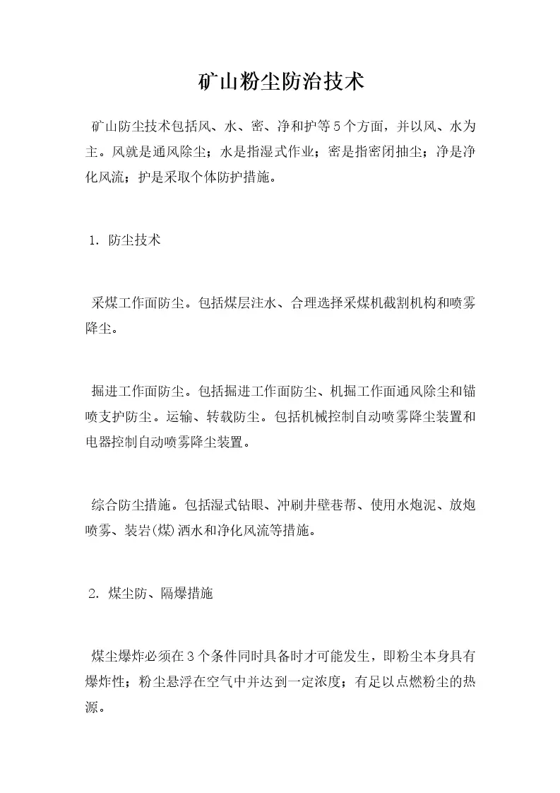 矿山粉尘防治技术