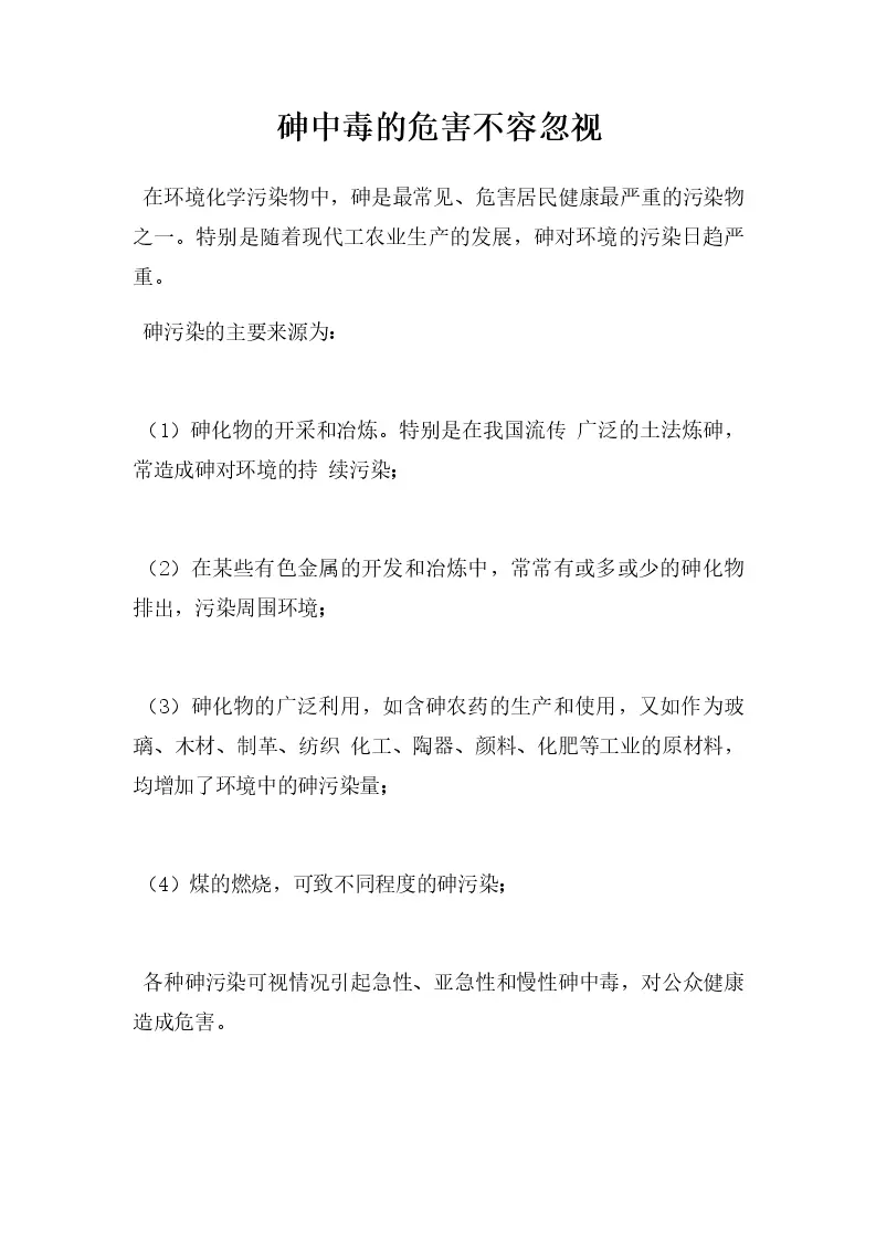 砷中毒的危害不容忽视