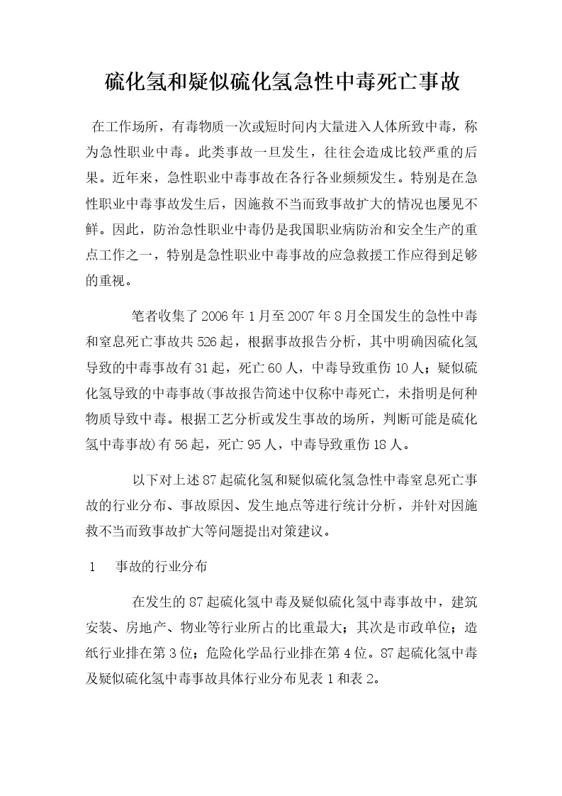 硫化氢和疑似硫化氢急性中毒死亡事故