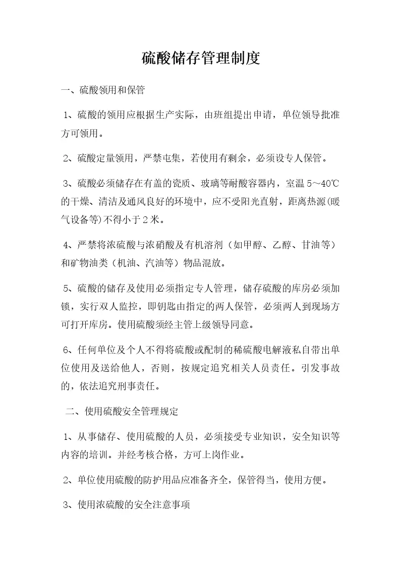 硫酸储存管理制度