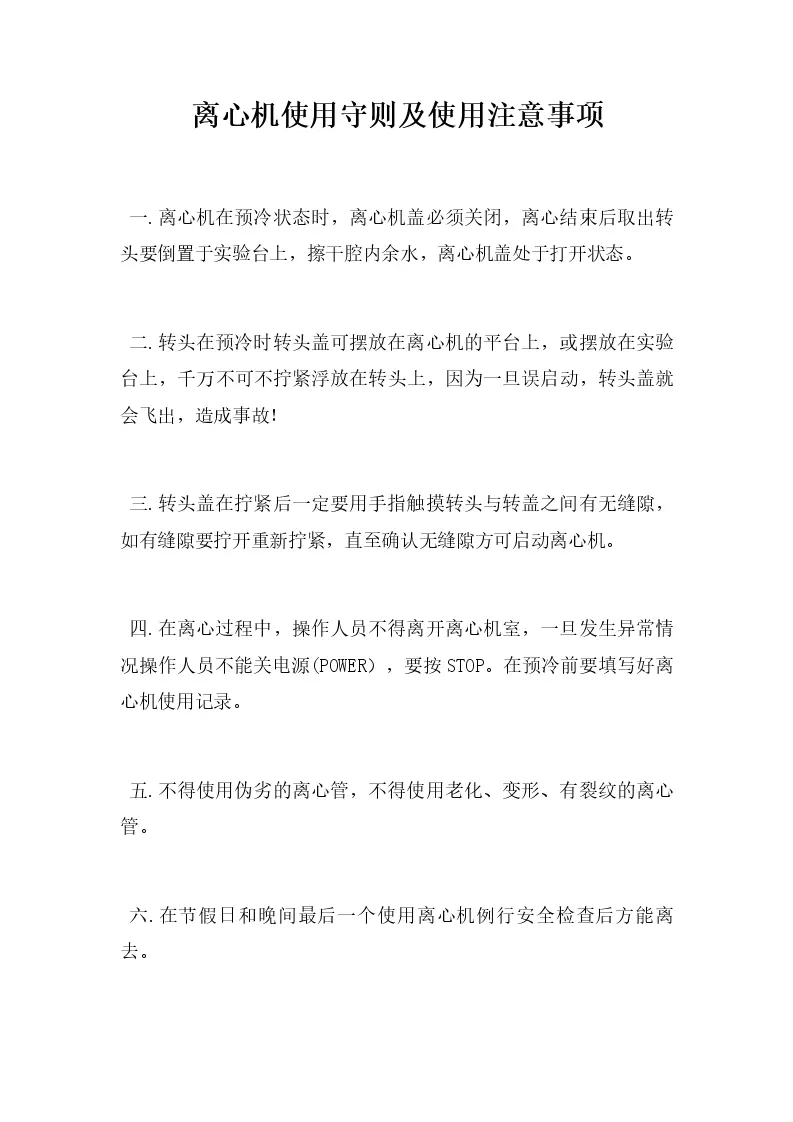 离心机使用守则及使...