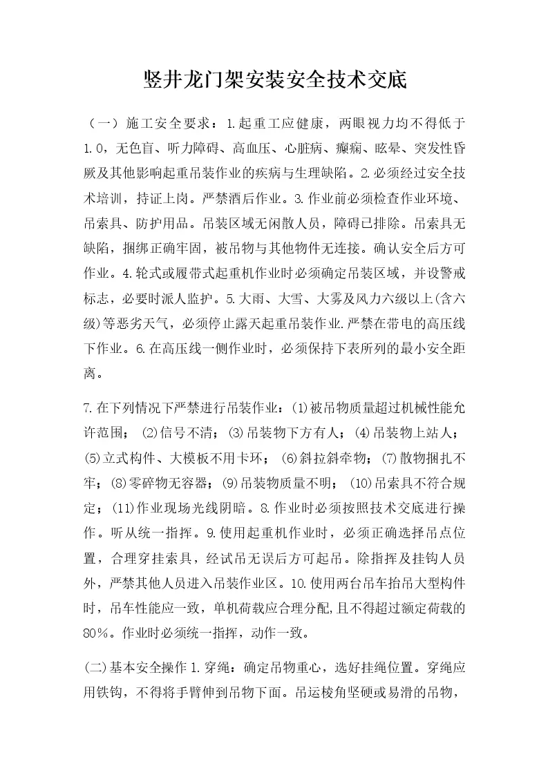 竖井龙门架安装安全技术交底