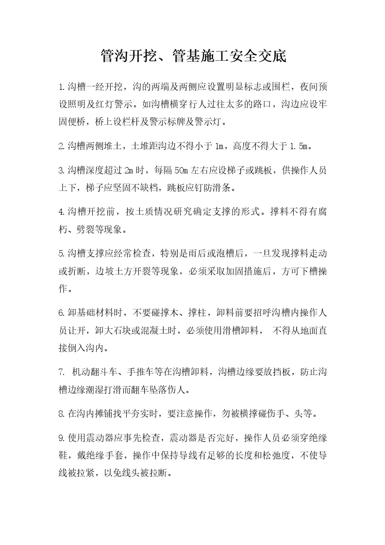 管沟开挖、管基施工安全交底