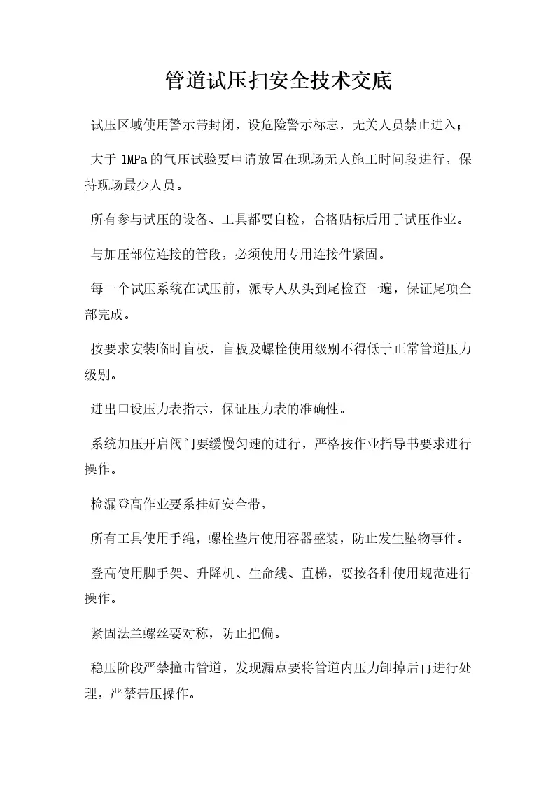 管道试压扫安全技术交底