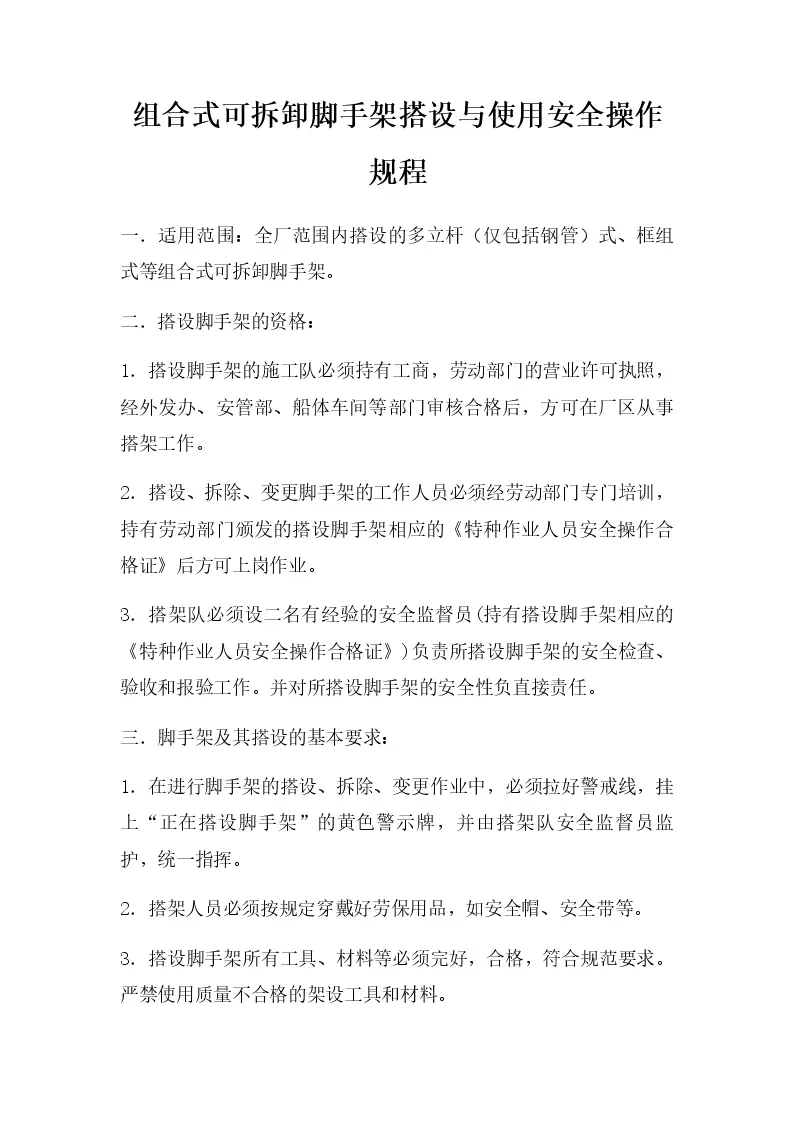 组合式可拆卸脚手架搭设与使用安全操作规程