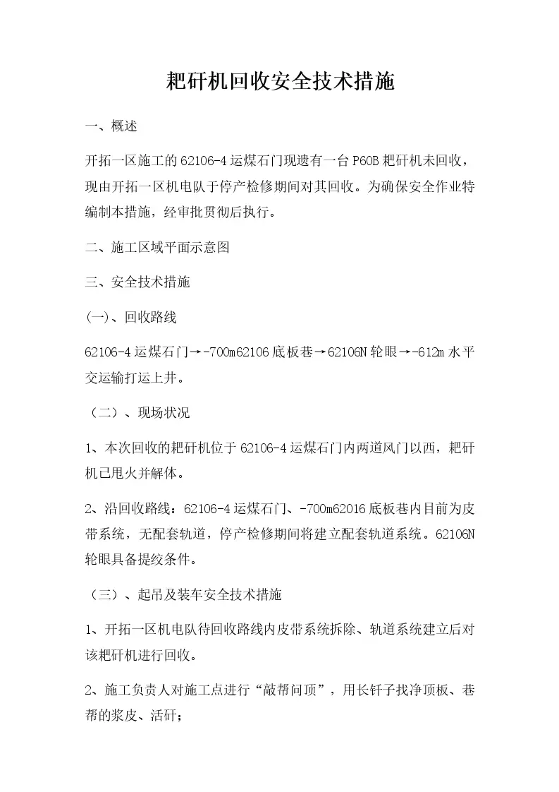 耙矸机回收安全技术措施