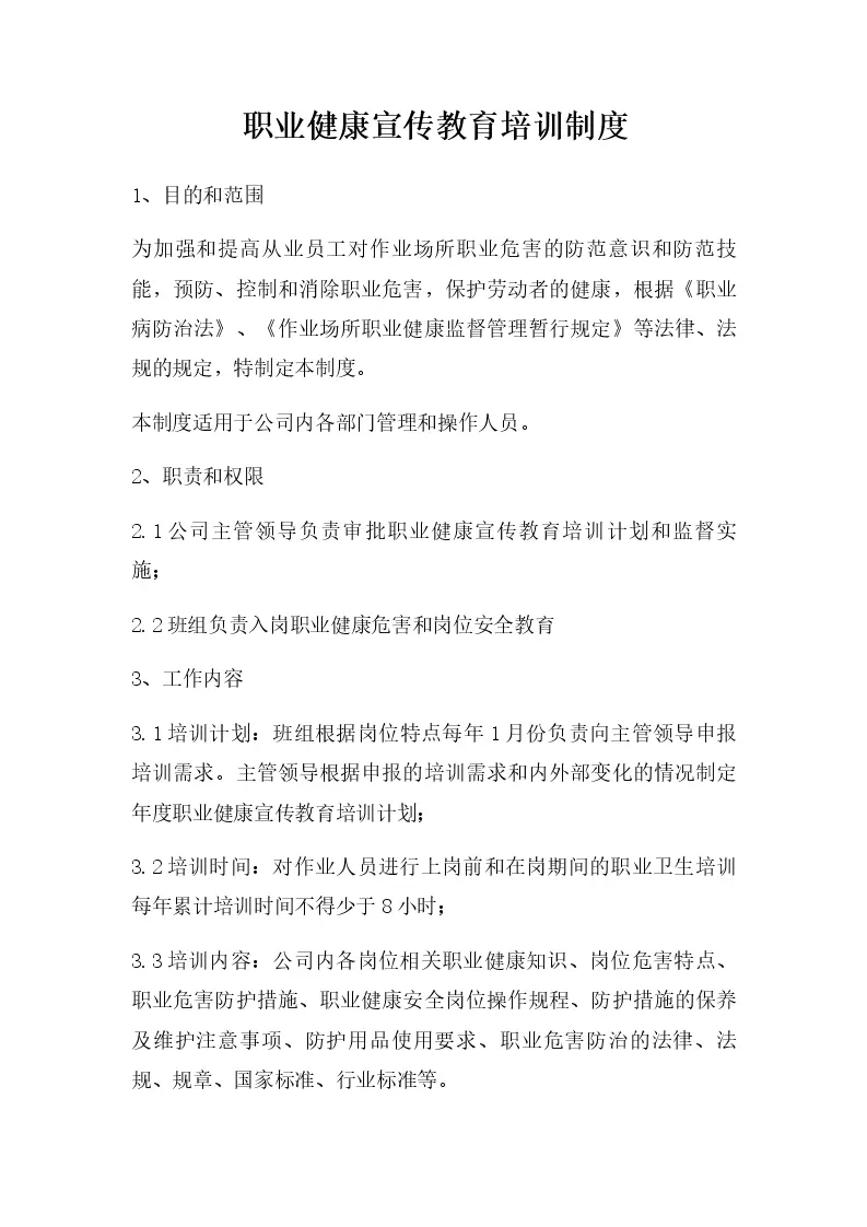 职业健康宣传教育培训制度