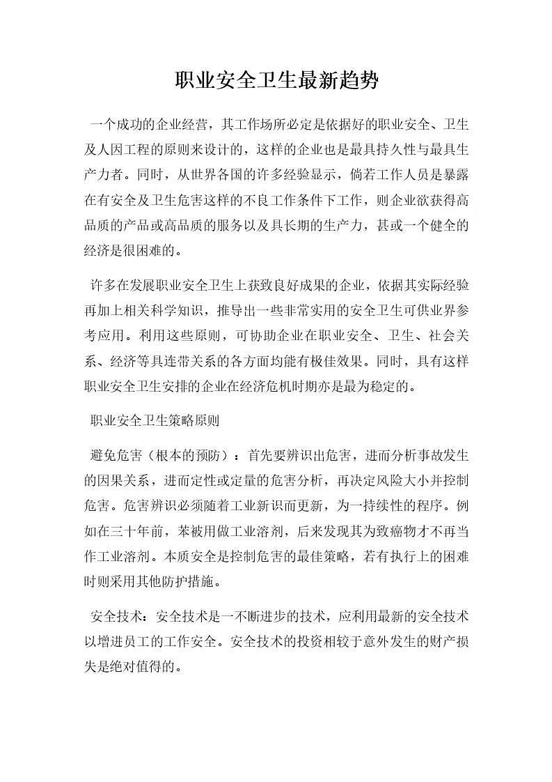 职业安全卫生最新趋势