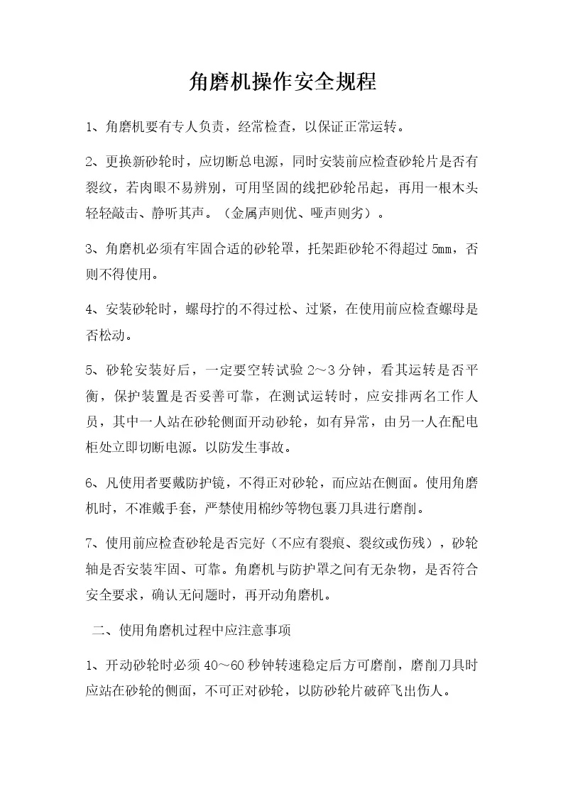 角磨机操作安全规程