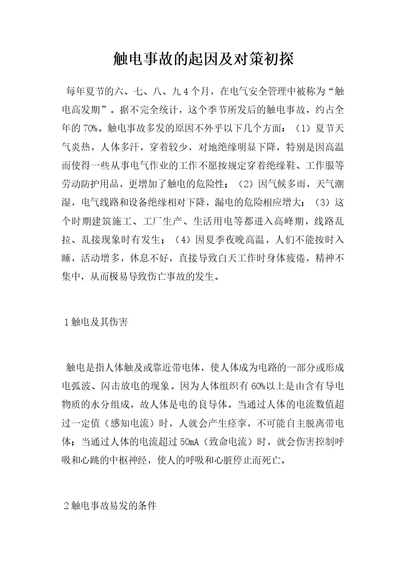 触电事故的起因及对...