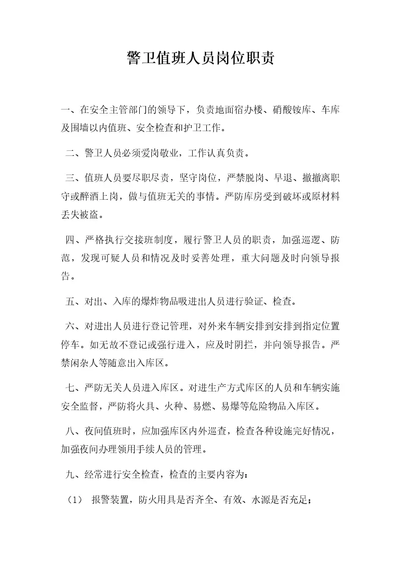 警卫值班人员岗位职责