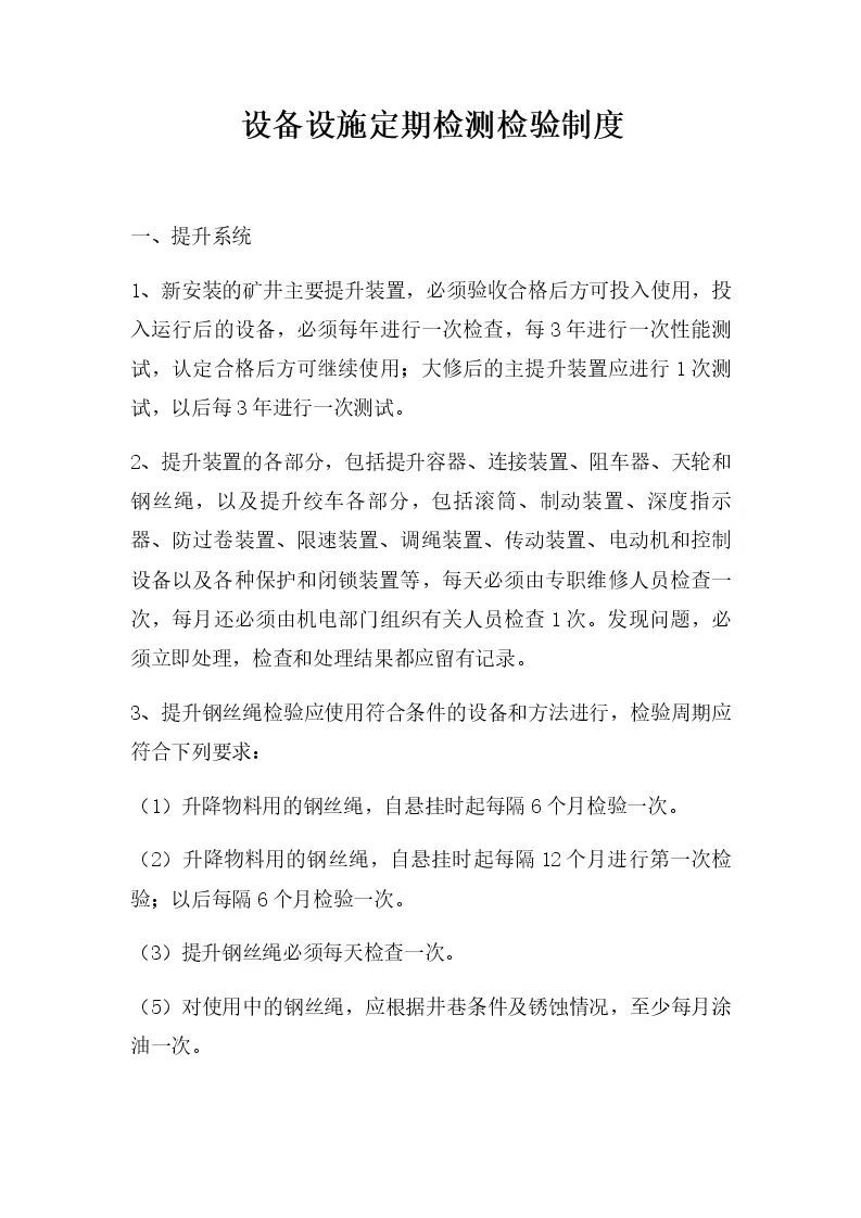 设备设施定期检测检验制度